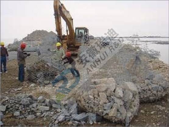 鋼絲網(wǎng)兜主要用于防汛搶險(xiǎn)加固、堵口、崩岸處理及工程基礎(chǔ)防護(hù)等。其原理是先將塊石放入網(wǎng)兜打包 起來,再利用機(jī)械設(shè)備將網(wǎng)兜塊石送到河床表面上,進(jìn)行水下拋投。利用這種方法進(jìn)行拋石施工,水流對塊石基本不產(chǎn)生漂移距,同時(shí)塊石對河床面的沖擊力也大大減少。