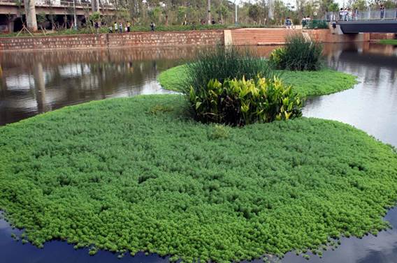 生態(tài)浮島對(duì)水質(zhì)凈化最主要的功效是利用植物的根系吸收水中的富營(yíng)養(yǎng)化物質(zhì),例如總磷、氨氮、有機(jī)物等,使得水體的營(yíng)養(yǎng)得到轉(zhuǎn)移,減輕水體由于封閉或自循環(huán)不足帶來(lái)的水體腥臭、富營(yíng)養(yǎng)化現(xiàn)象。